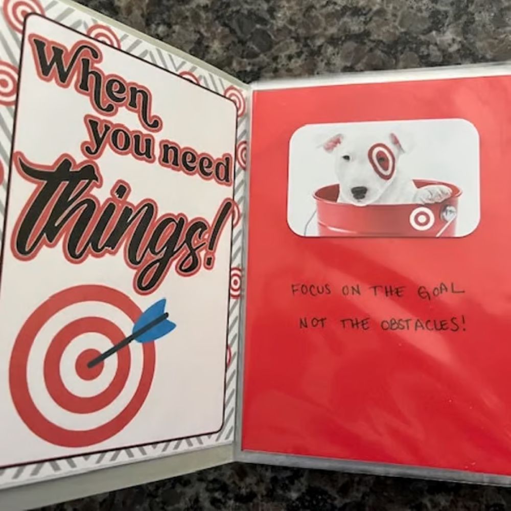 You can use whichever pages you see fit in the book and cut out the ones you don't want. Add a gift card in any amount and when kids are missing home or having a hard day they can use a gift card to brighten their day. Surprise your child with this book before they head off to College (for the first time or the last).
