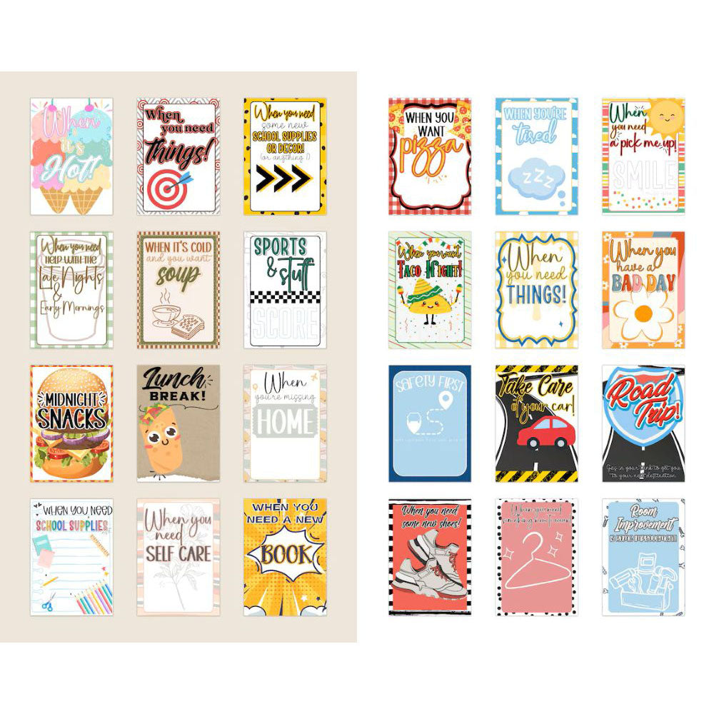 This 35-page book is filled with 31 pages that gift cards can be added to. Give your kids a memorable and loving gift to send them off to college with for the good days and the bad. Perfect for an Open When project.