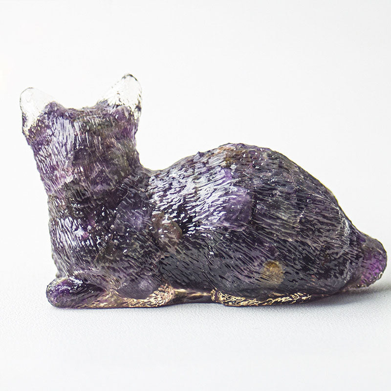 Handmade Natural Crystal Gemstone Lying Cat