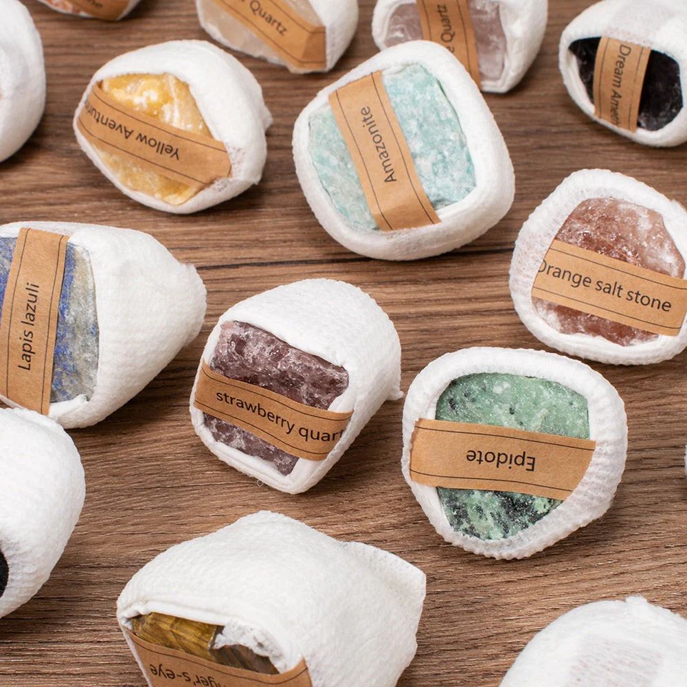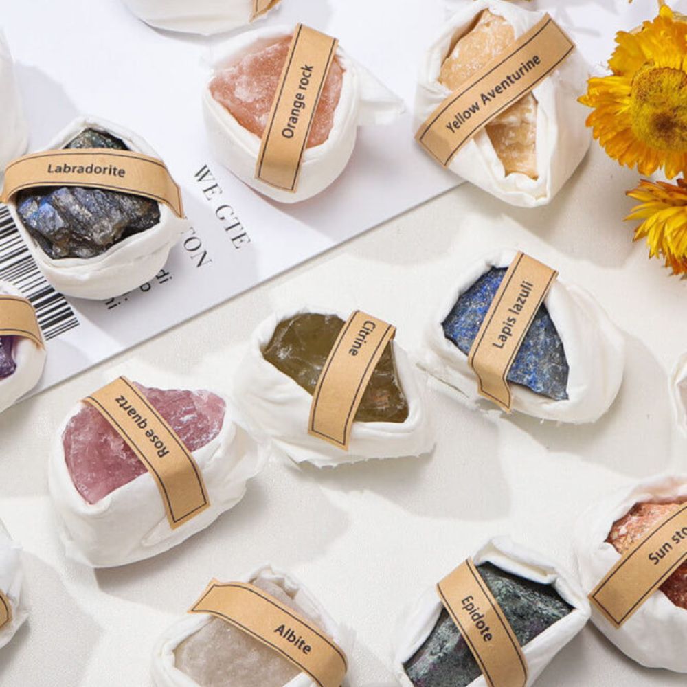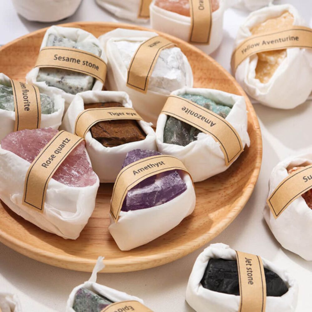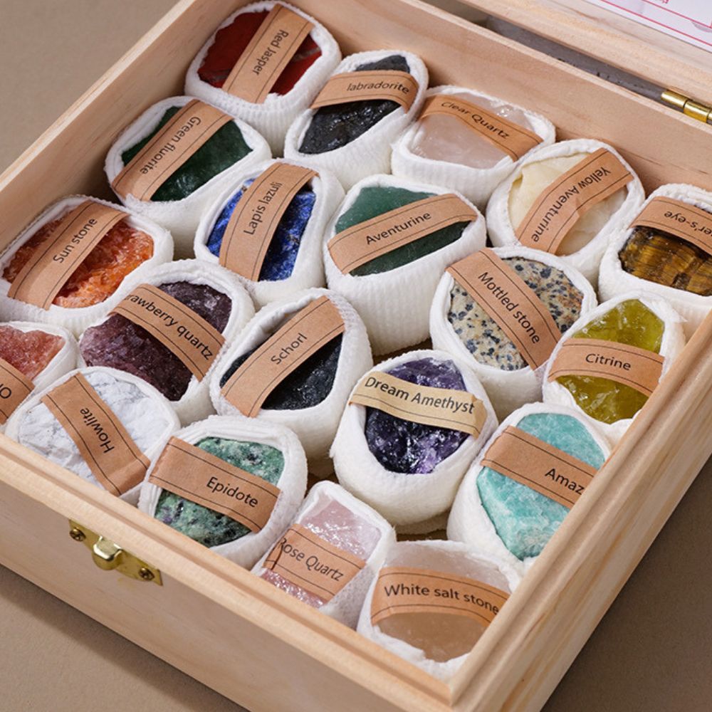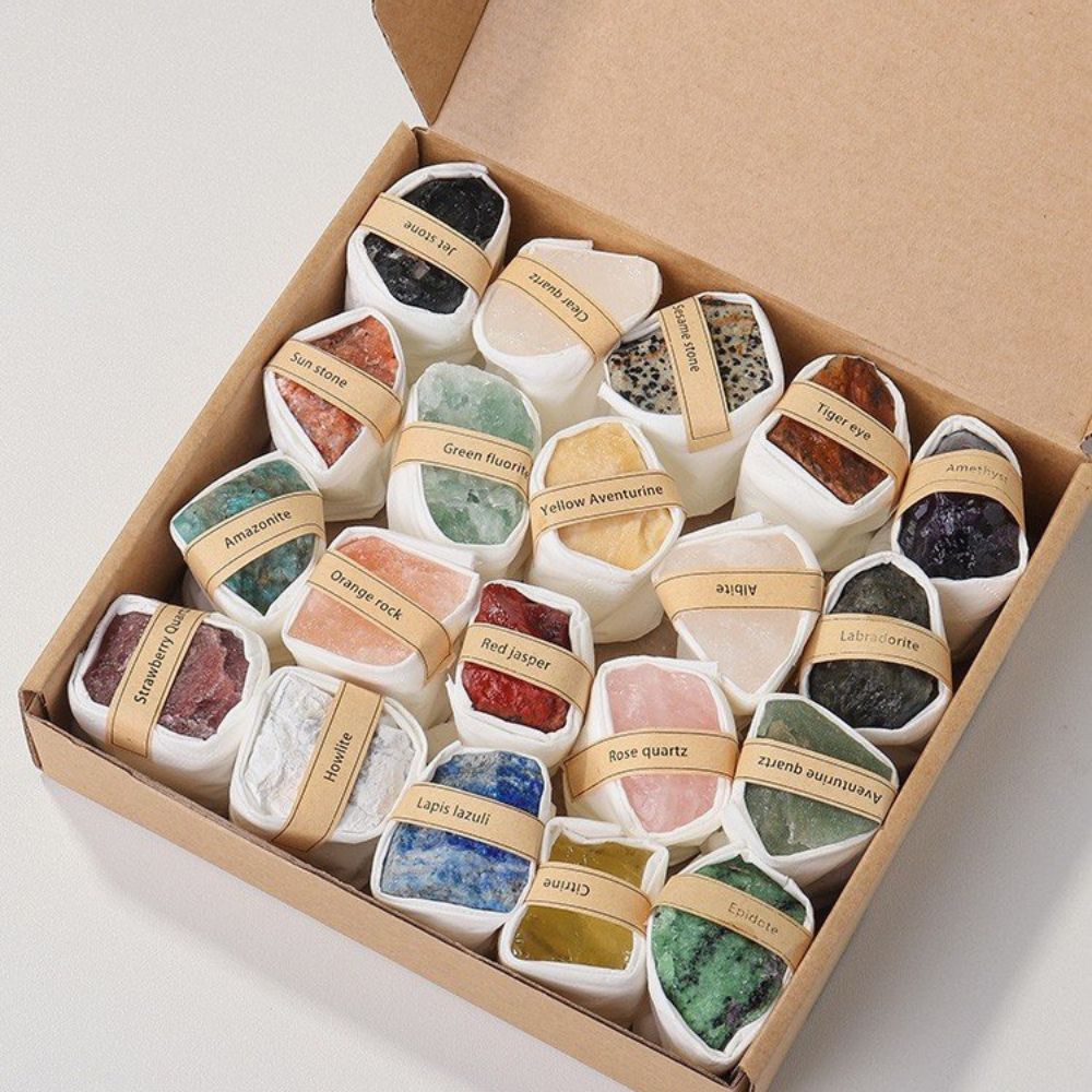 100% High Quality Natural Raw Stone Set Gift Box. Each crystal raw stone has a unique shape and veins.