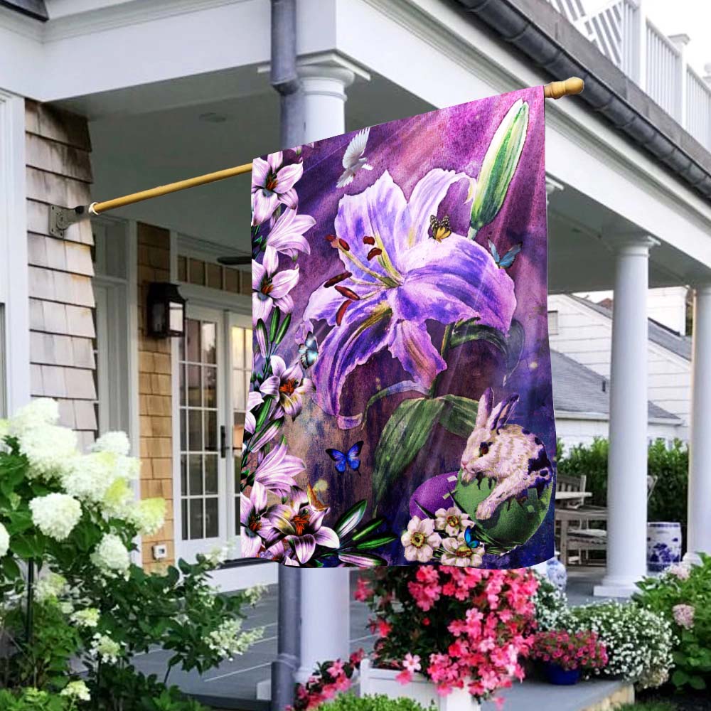 Happy Easter Lilies and Bunny Decorative Flag