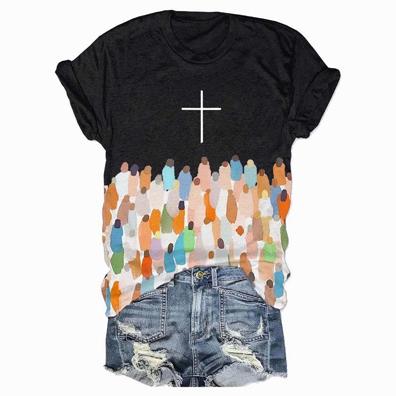 Women's Faith Respect Jesus Cross Print Crew Neck T-Shirt