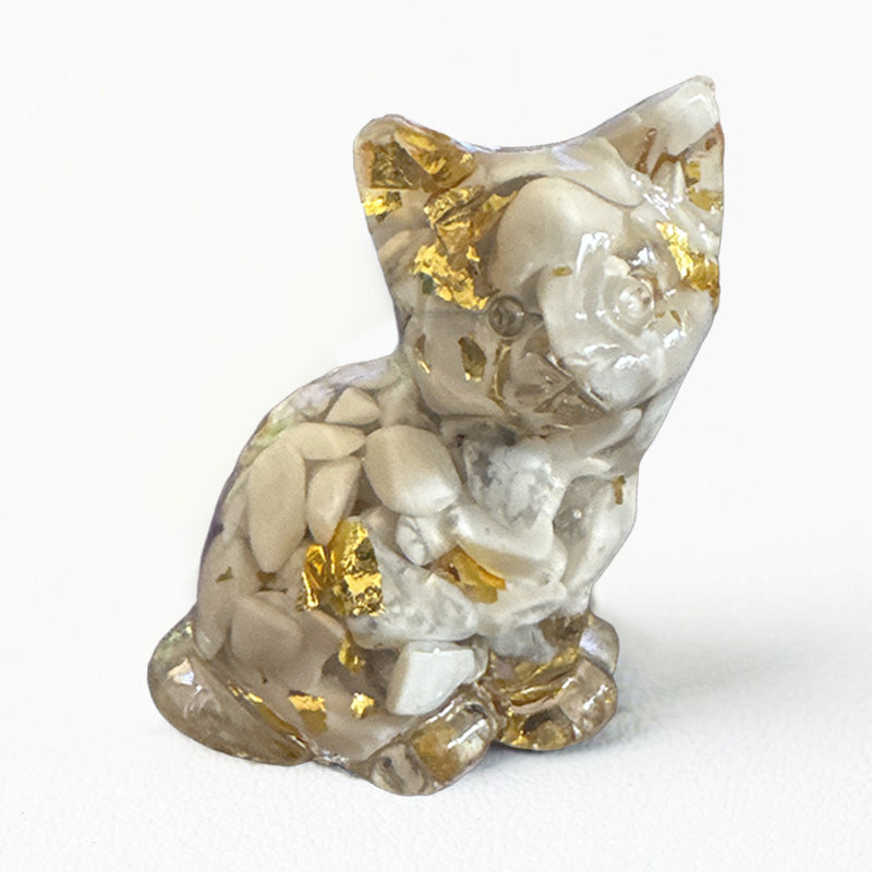 Howlite Point - Handmade Natural Crystal Gemstone Sitting Cat
