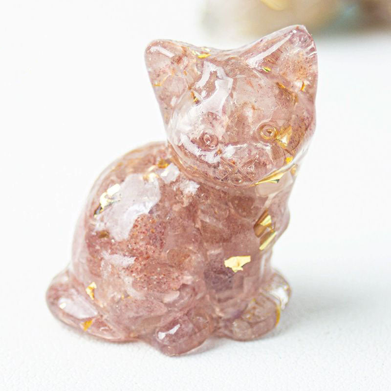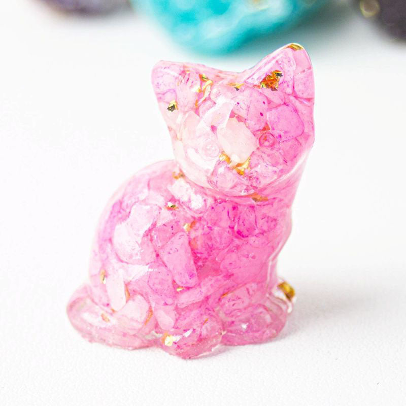 Pink Crystal - Handmade Natural Crystal Gemstone Sitting Cat