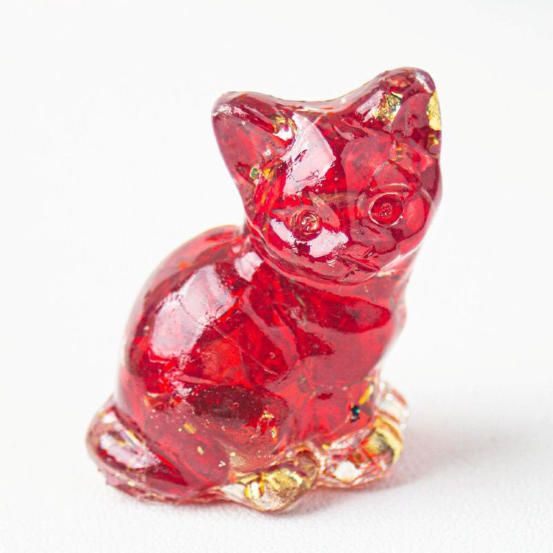 Red Glaze - Handmade Natural Crystal Gemstone Sitting Cat
