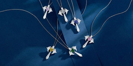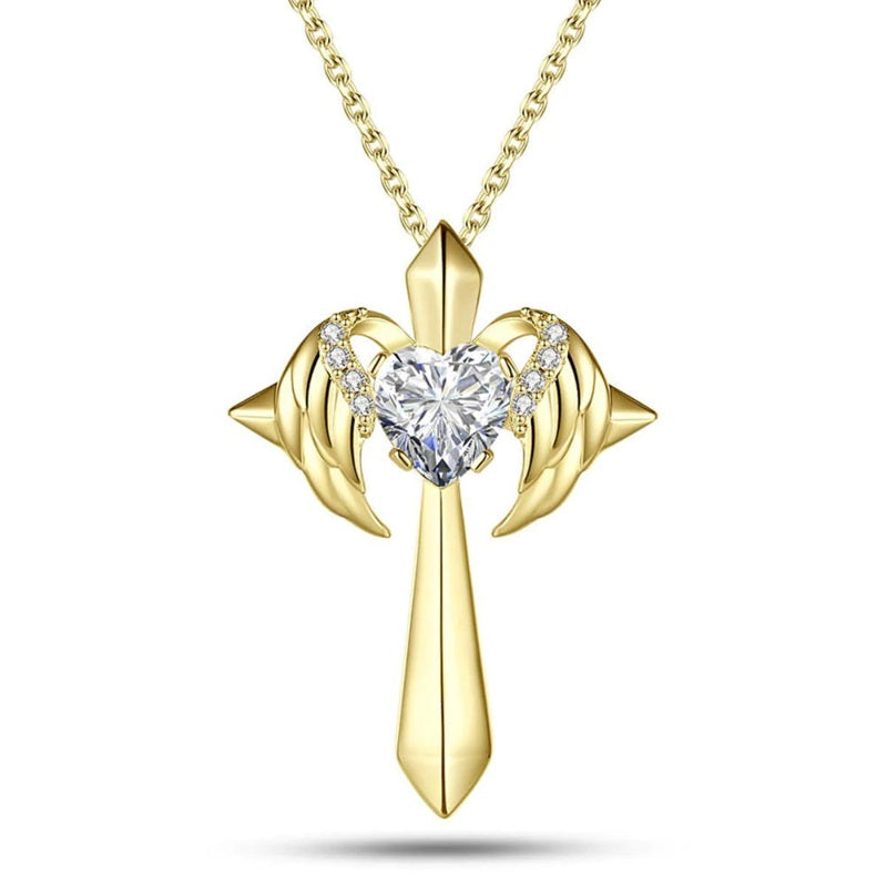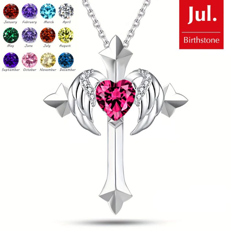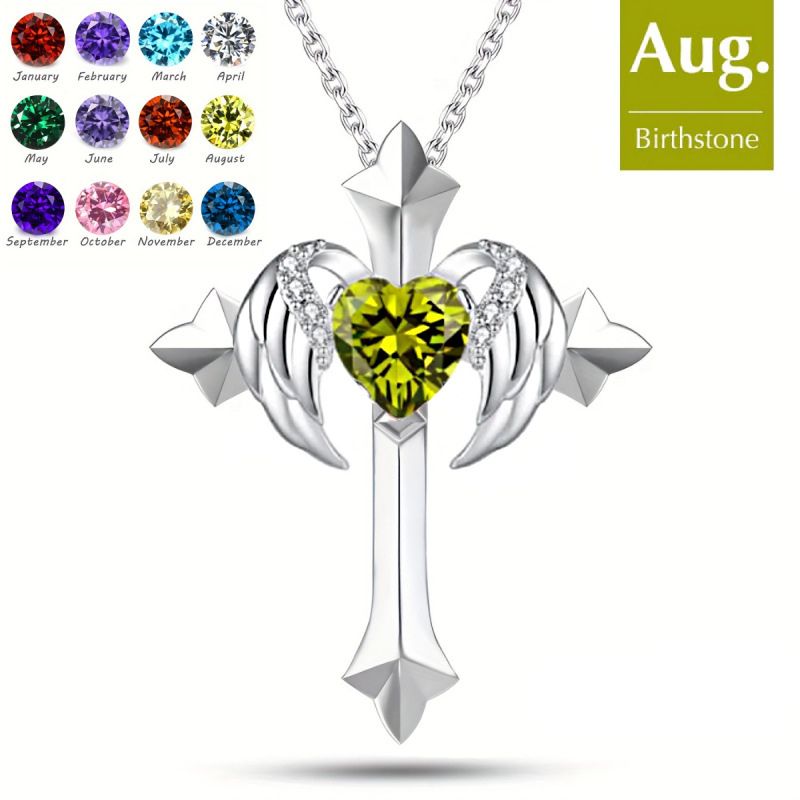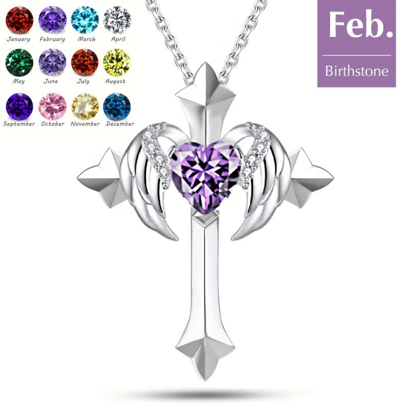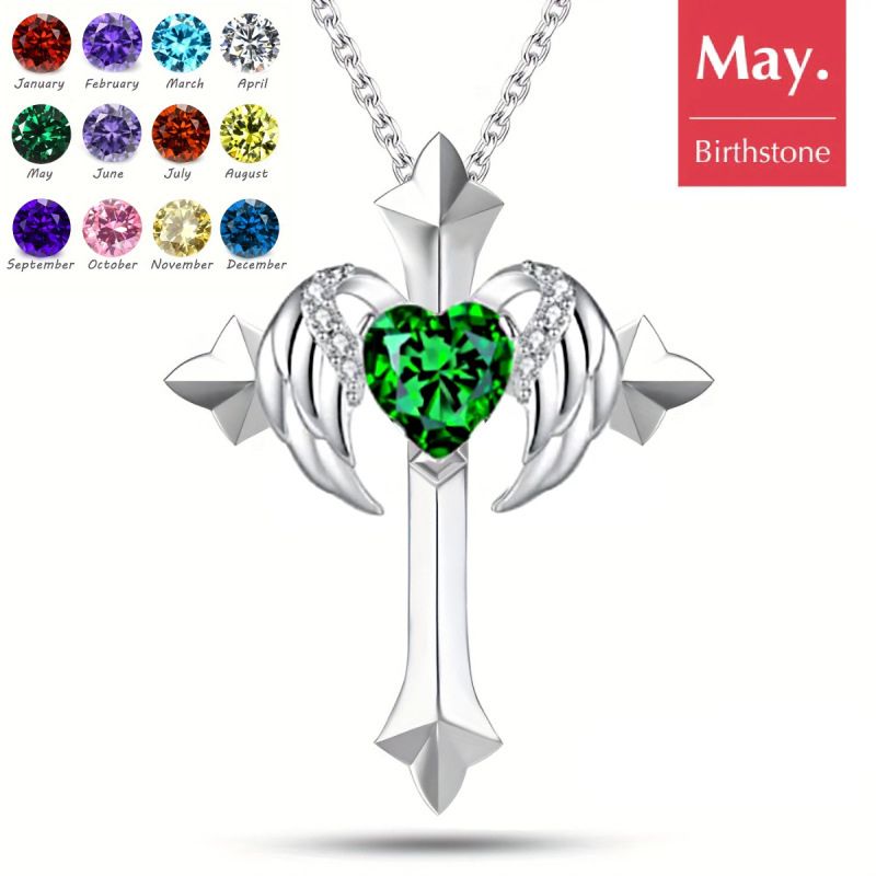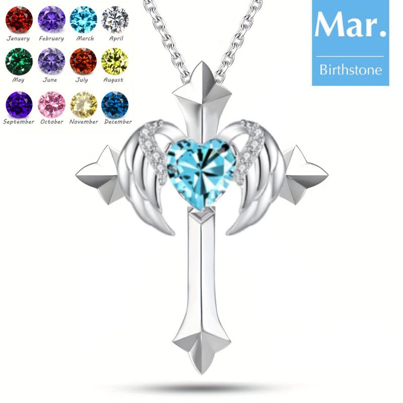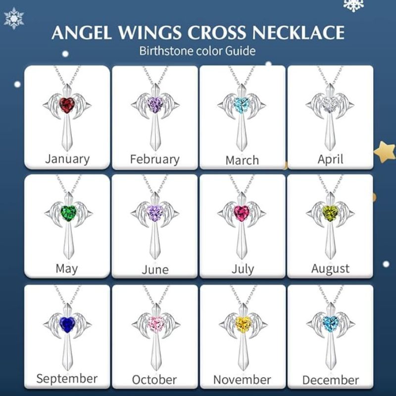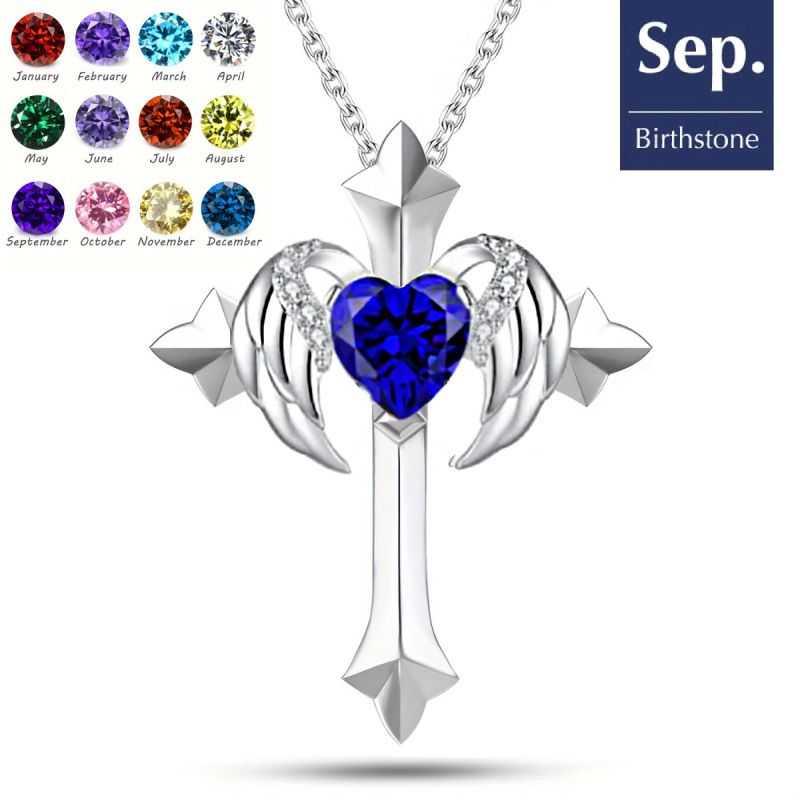 Birthstone Zirconia - Angel Wings Cross Necklace