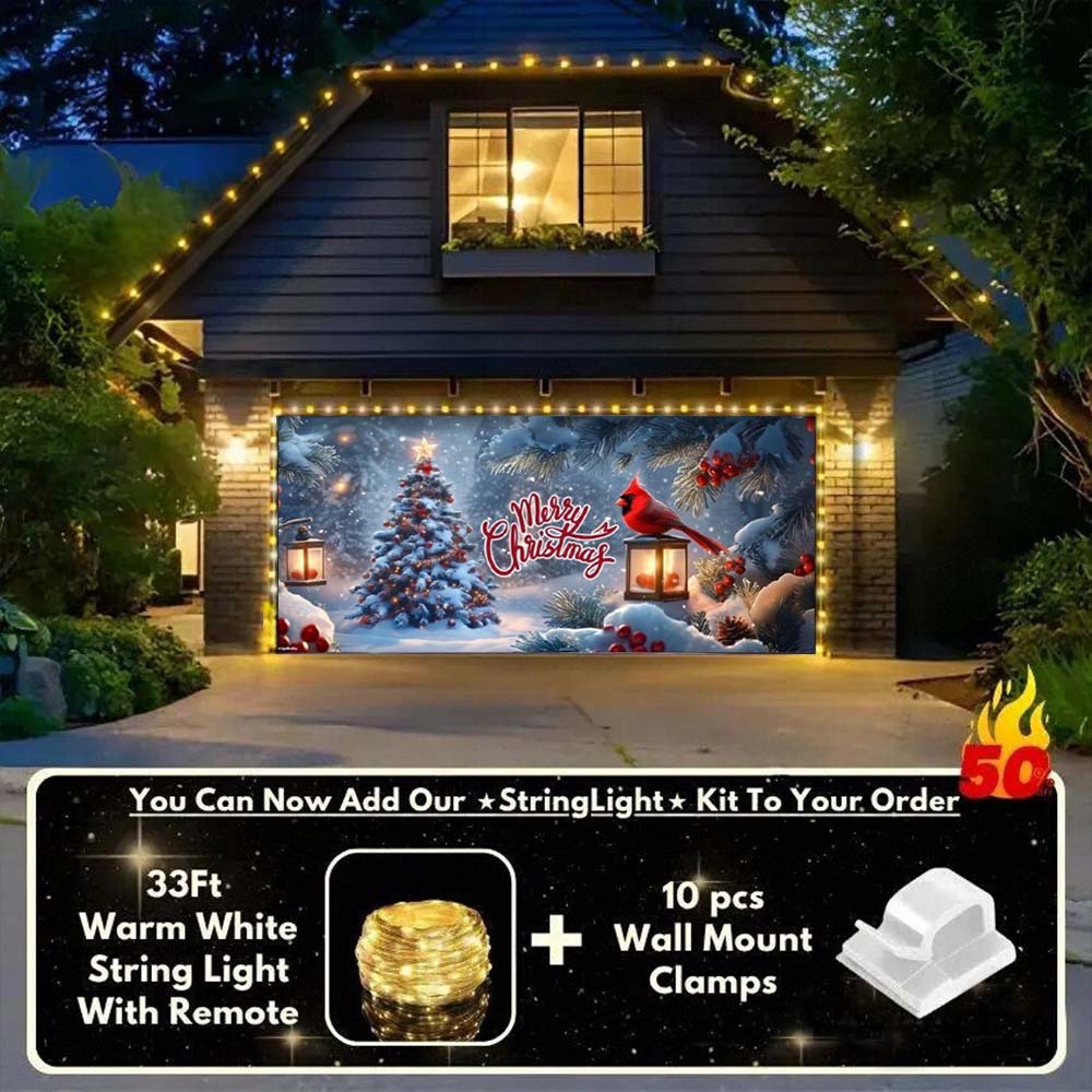 Transform your garage into a magical winter scene with this Cardinal's Christmas Garage Door Cover! Featuring vibrant red cardinals perched among frosted branches, snowy pinecones, and a serene winter backdrop, this festive garage door cover captures the peaceful beauty of the season. lt's one of the most heartwarming Christmas decoration ideas-symbolizing hope, love, and joy-while turning your home into a true holiday centerpiece.
