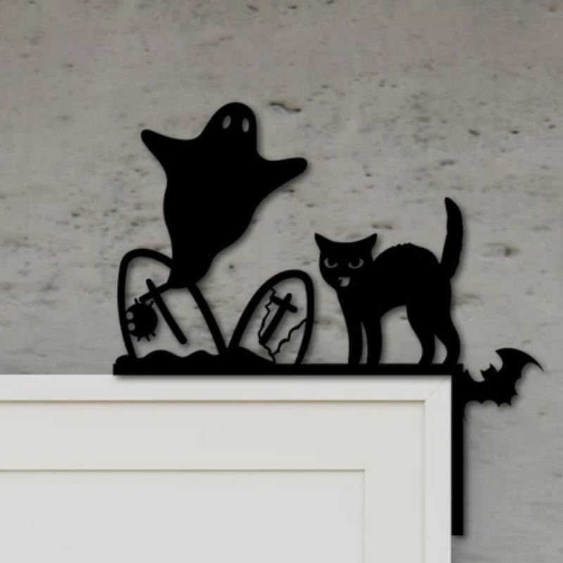 Enhance your home's charm and add a touch of whimsy with this adorable Metal Door Topper. Can be placed on a door, shelf, fireplace mantel, or window sill.