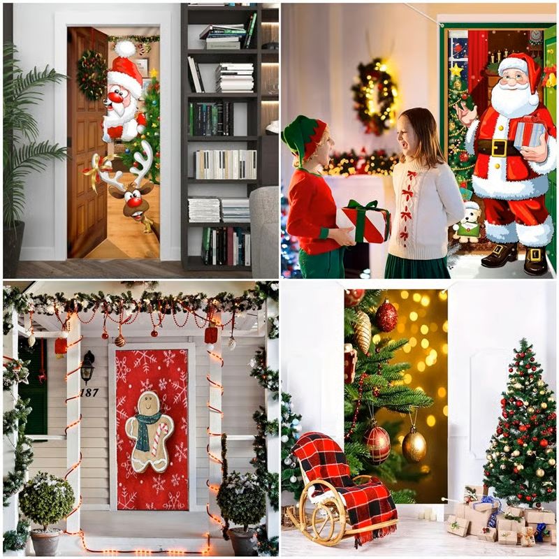 Keywords: Chirstmas door cover, santa door decoration, front door Christmas banner, outdoor Christmas decor, farmhouse Christmas door curtain, durable Christmas tapestry.