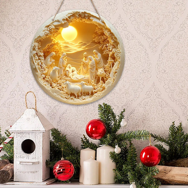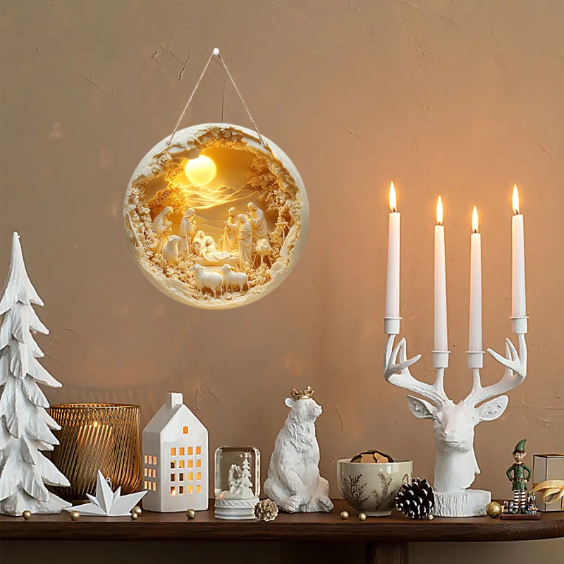 Classic Style The Holy Family Lamb 2D Christmas Nativity Hanging Ornaments