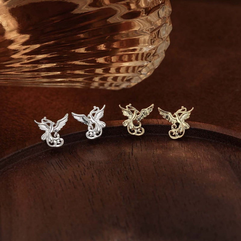 Add a touch of mythical charm to your jewelry collection with our Extra Small Phoenix Stud Earrings. Expertly crafted from high-quality sterling silver, these earrings are available in silver or gold finishes, allowing you to choose the perfect style to complement your look.