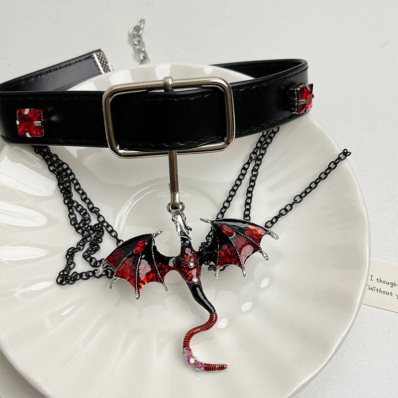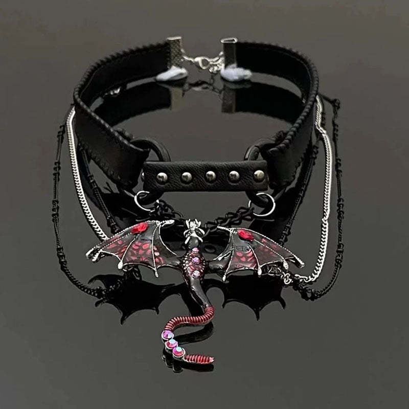 😈Elevate your style with our Gothic Punk Flying Dragon Tassel Choker Necklace – where fantasy meets fashion in a captivating display around your neck.