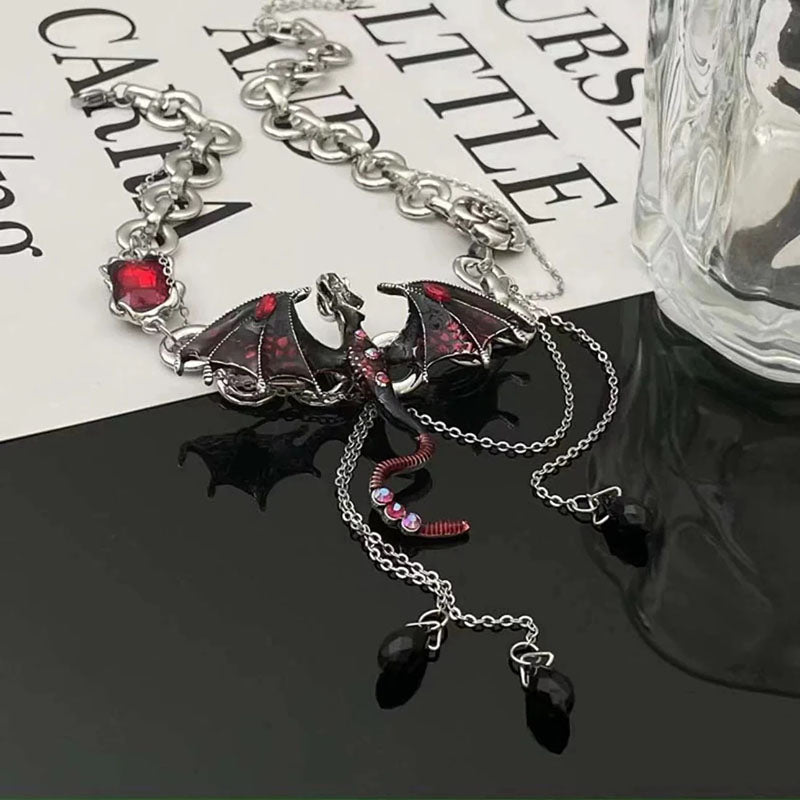 Make a bold statement with our Gothic Exaggerated Imprisoned Flying Dragon Necklace!