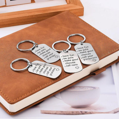 Have Fun Be Safe Make Good Choices and Call Your Grandma/Grandpa Keychain