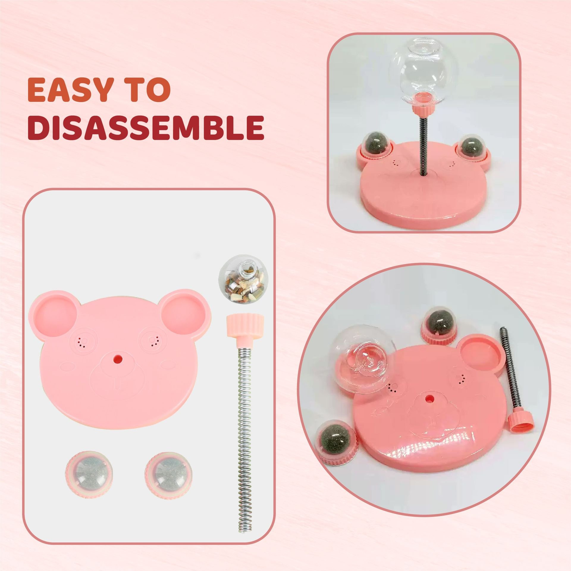 Easy to clean: The simple structure and ergonomic design enables this ball feeder to be disassembled and assembled easily to clean each part more effortlessly.