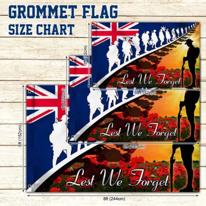 Lest We Forget. Anzac Day. Poppy Veteran Grommet Flag