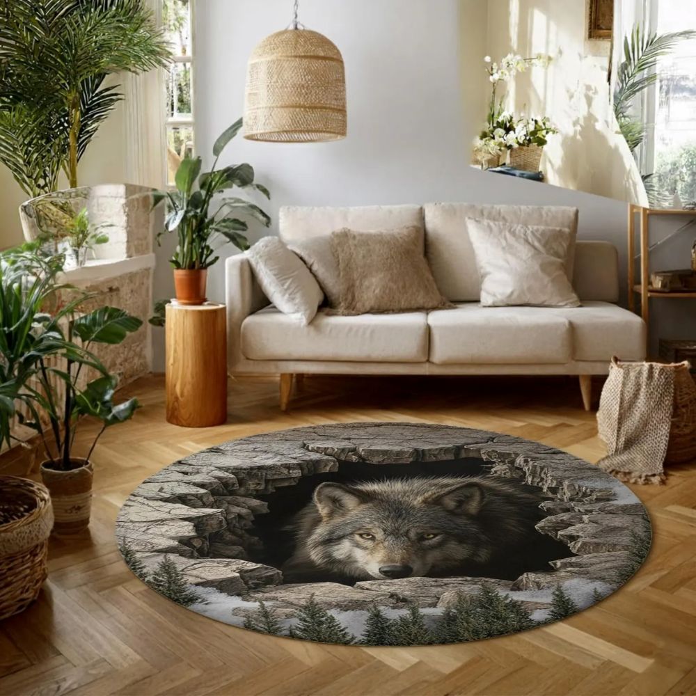 Mystic Wolf Cave - 3D Illusion Round Rug - H635