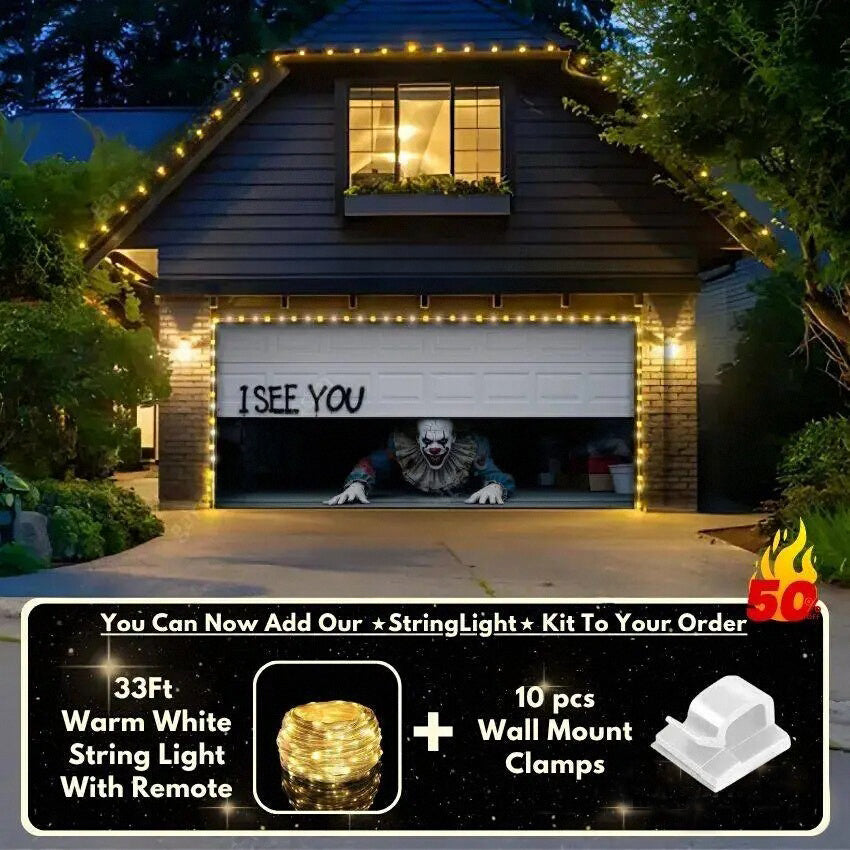 The best part? This creepy Halloween Garage Door Cover is designed to work seamlessly—your garage door will still open and close as normal. No door drama here—just pure Halloween magic!