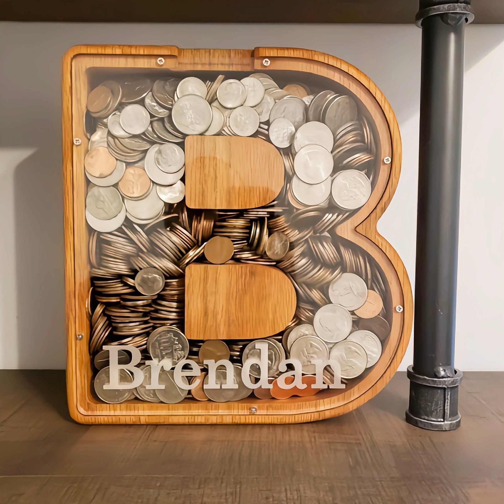 This wooden money box frame is environmentally friendly and safe for children. It's crafted from one piece of oak and can be used for a long time.