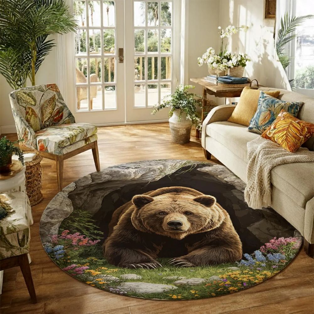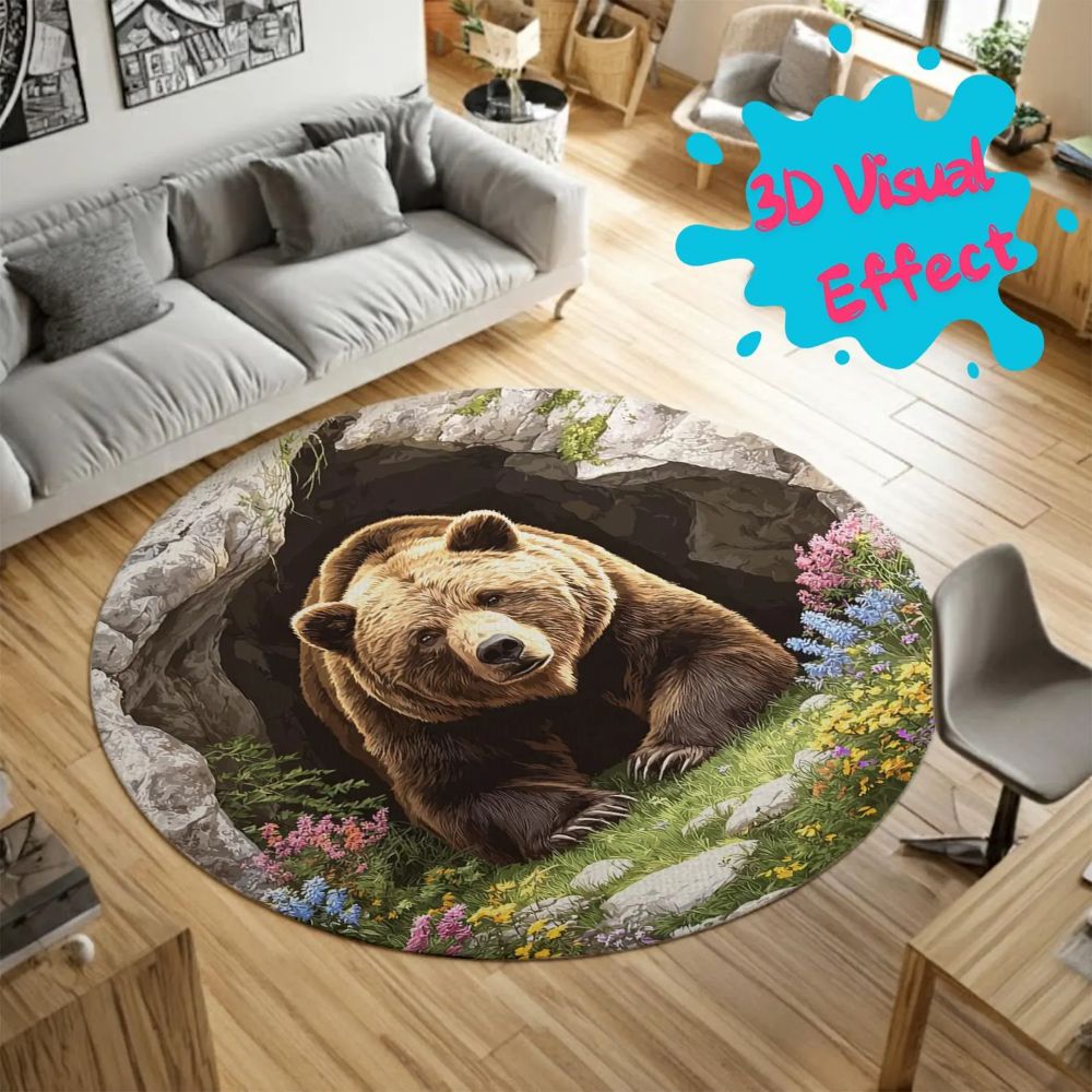 Spring Floral Bear Cave - 3D Illusion Round Rug - H641