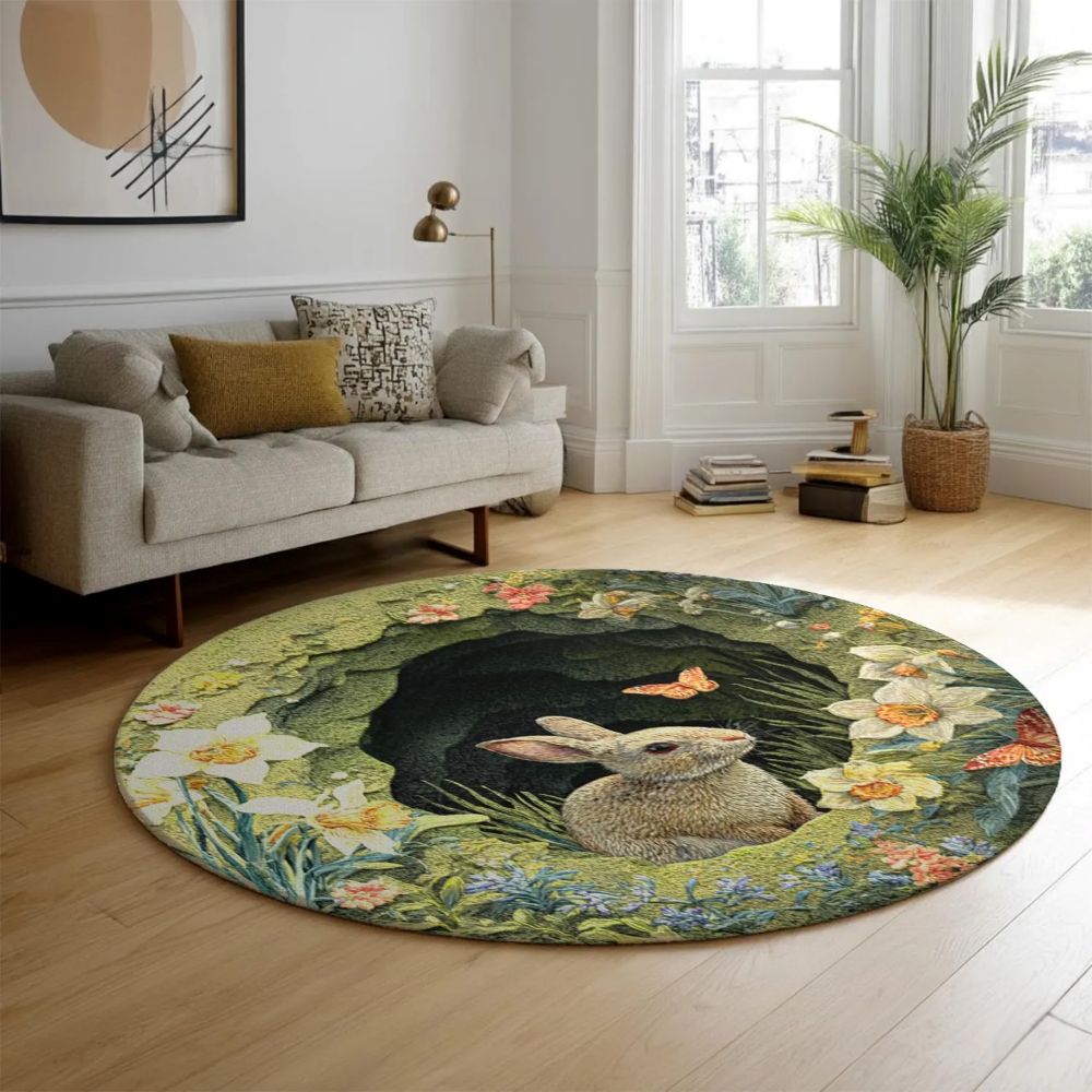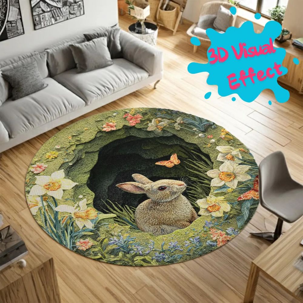 Spring Flower Bunny - 3D Illusion Round Rug - H639
