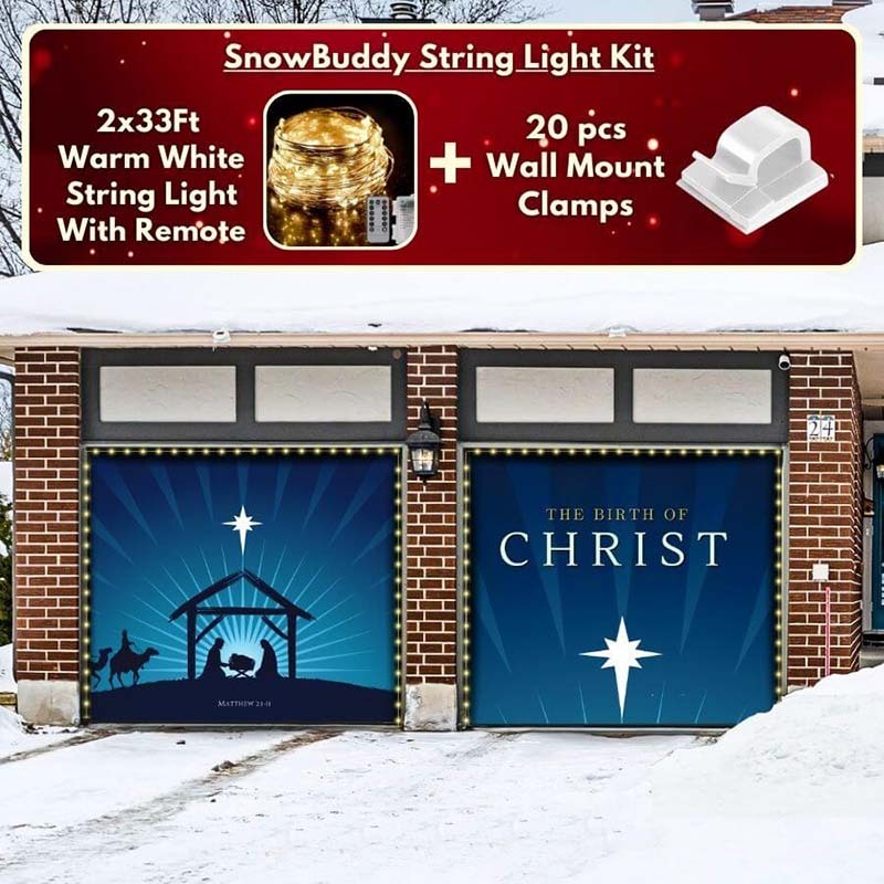 You now have the option to add the string light kit to your order at 50% Off and turn your garage into a true winter wonderland. The kit includes 1x 33ft warm white string light, a remote control, and 10x sticky wall mount clamps.
