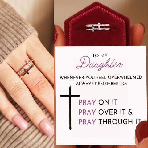 To My Daughter "Pray Through It" Twin Band Cross Ring