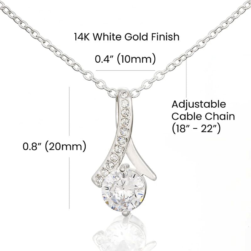 Give your Mom the gift that symbolizes your never-ending love. This Alluring Beauty necklace features a beautiful petite ribbon shaped pendant. It is the perfect and unique gift for that special someone this holiday season.