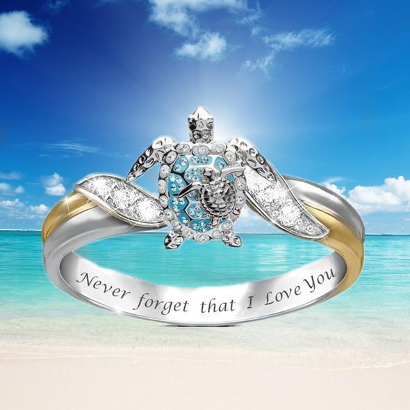 Meticulously handcrafted,The ring features a mother turtle and baby turtle together. The baby figure resting on top of its mother’s shell creates a fetching contrast and with the loving engraved words "Mom loves You Forever" adds sweet touch to the ring.