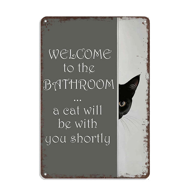 Transform your bathroom with this charming cat design! The "Welcome To The Bathroom" sign adds a whimsical, nostalgic vibe. It's crafted from durable aluminum, ensuring longevity.