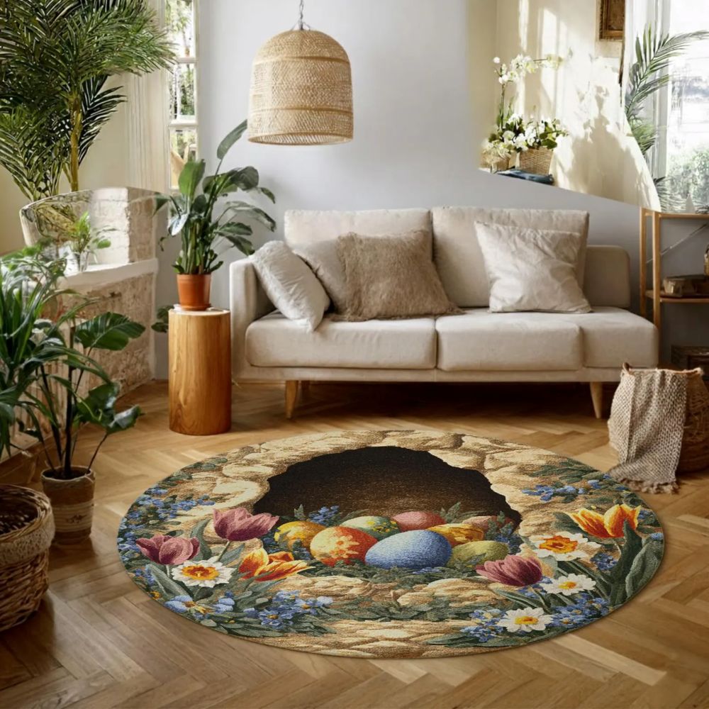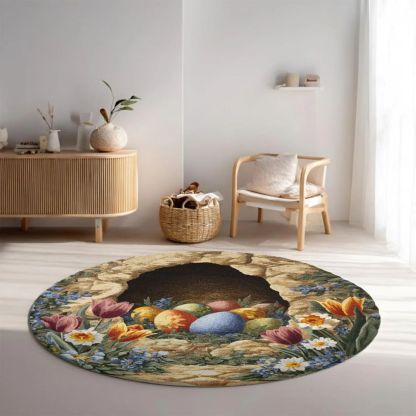 Vintage Floral Easter Nest - 3D Illusion Round Rug - H640
