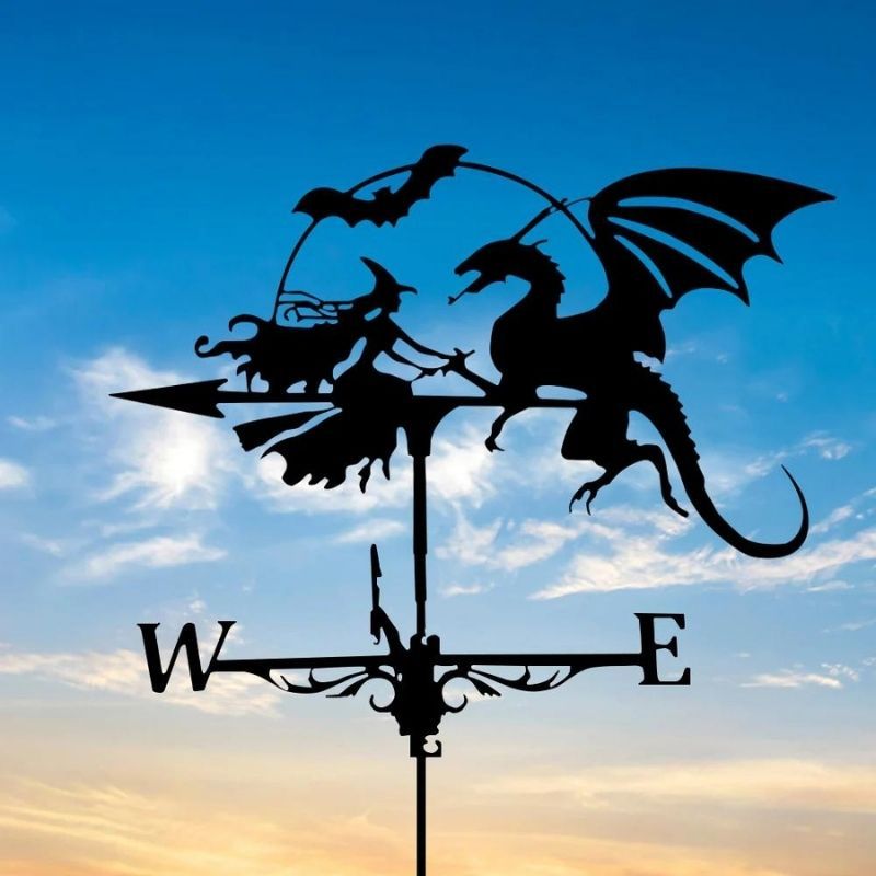 Witch and Dragon Stainless Steel Weathervane MW020